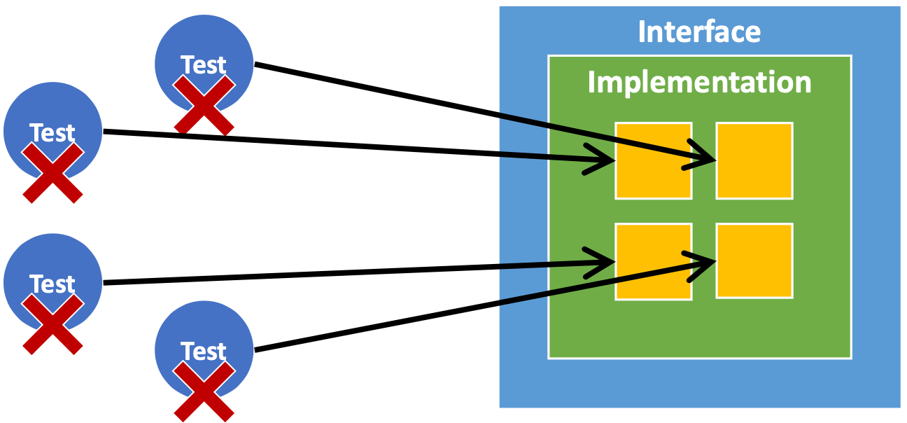 - (3) 구현체들을 리팩토링하면 결합되어있는 테스트 케이스들이 모두 깨져버림 -> 테스트에 대한 부담 증가