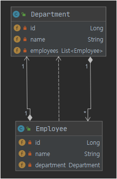 Department와 Employee의 관계를 코드로 간단하게 표현해보겠습니다.